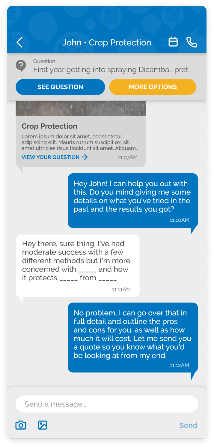 AGvisorPRO is a mobile application at the forefront of agricultural innovation. Connecting farmers with industry experts in the agricultural industry, AGvisorPRO gives its users the resources they need to tackle difficult challenges, gain new knowledge, and be successful in an industry that is evolving at an accelerated pace in the digital age. On the AGvisorPRO application, farmers can ask questions and receive responses from industry experts in the agricultural field through a service called “Ask The Network”. The network of experts consist of users from a wide range of agricultural industries - from mechanical engineers, to cattle farmers, and everything in between.