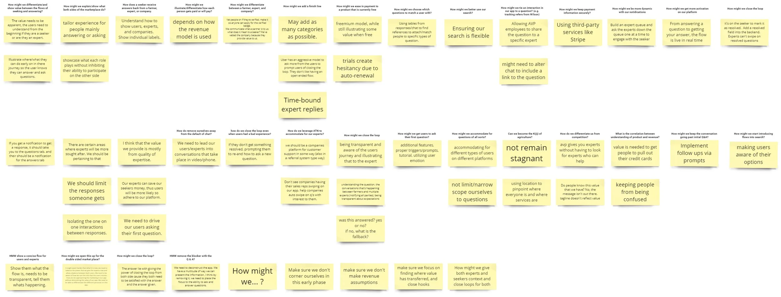 To narrow the scope of our sprint, we interviewed experts within the company and external stakeholders. During the interviews we captured interesting details and key points which we then turned into How Might We statements.