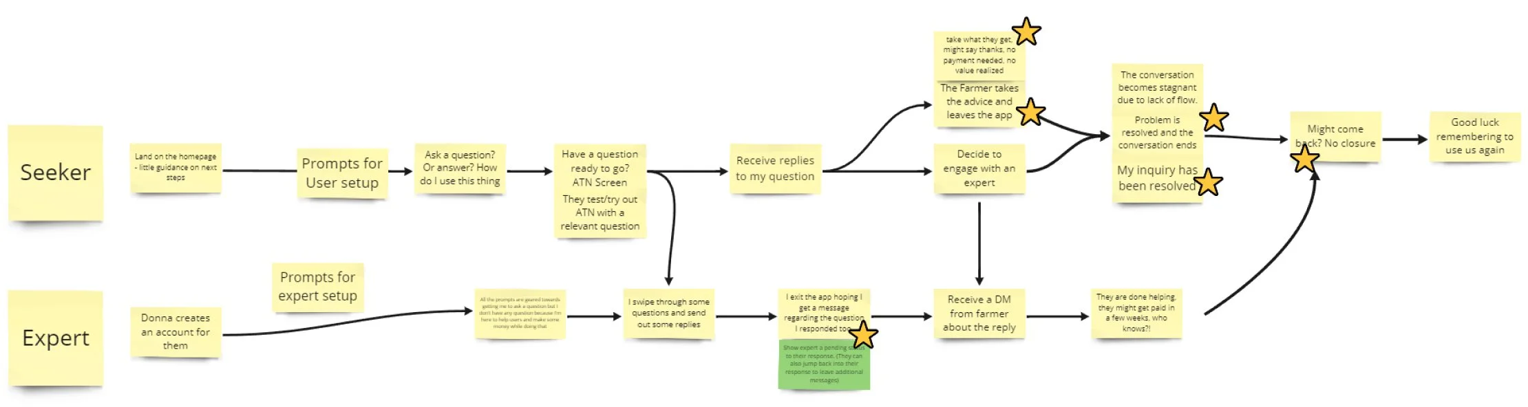 Although our scope expanded slightly during the course of the week, the insights we gained through testing our solutions in user interviews gave us valuable information for future iterations. We established that our Farmer users were happy and willing to pay for services, and that our Experts saw value in expanding their services to our platform. We made significant progress towards our goal of communicating value in the platform, incentivizing our users and generating revenue for both industry experts and the business.