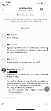 We looked at examples that we felt effectively communicated value, provided closure, and were transparent in their offerings. We found product and service marketplaces shared the most similarities with what we wanted to achieve - some of the products we looked at included Facebook Marketplace, Fiverr, and Maple.
